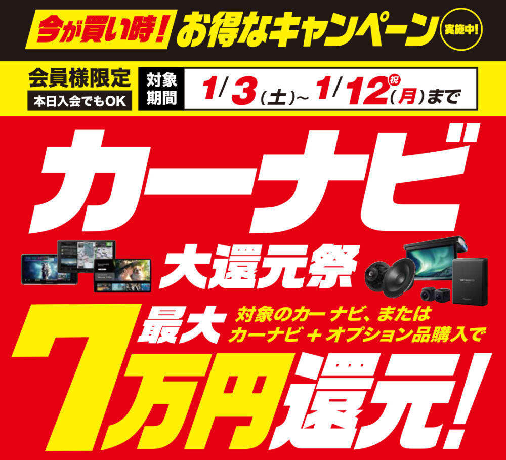 カーナビ最大7万円大還元祭!【1/3~1/12】