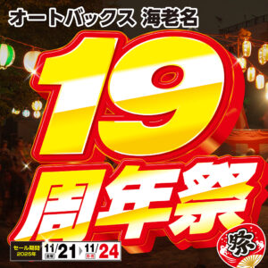 【11月21日~24日】オートバックス海老名19周年セール開催 オートバックス海老名は皆様のお陰で19周年を迎える事となりました。日頃のご利用に感謝の気持ちを込めて、4日間限りの19周年セールを開催致します。 日程:2025年11月21日(金)...